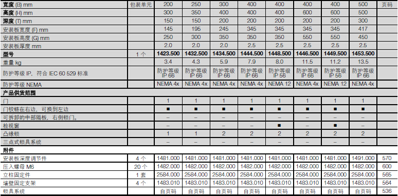 材料:– 箱体和门:玻璃纤维增强的不